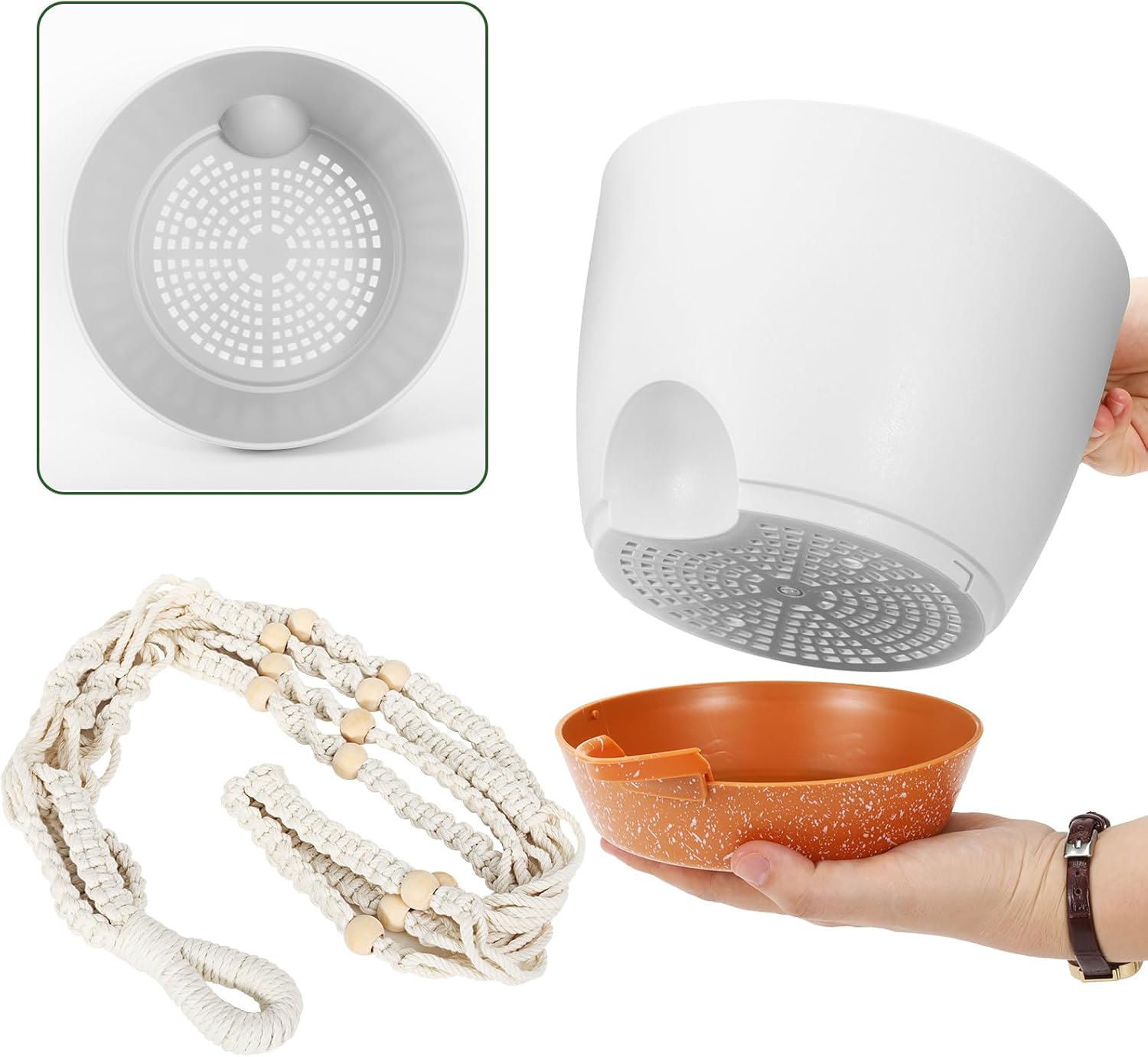 GARDIFE 8 Inch Hanging Planters with Macrame Plant Hanger for Indoor and Outdoor Plants, 2 Pack Large Self Watering Hanging Plant Pot with Basket Flower Pot with Drainage Hole, White