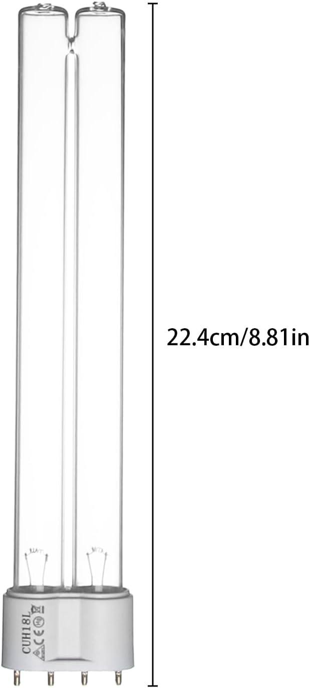 - 【Powerful 18W UV】With a wattage of 18 and a length of 8.75" 4-pin base, provides easy installation and compatibility with various devices. EPA Est. No. 96998-CHN-1.