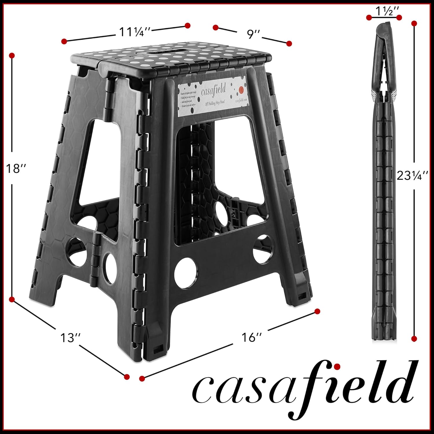 Casafield 18" Folding Step Stool with Handle, Black - Portable Collapsible Small Plastic Foot Stool for Adults - Use in The Kitchen, Bathroom and Bedroom