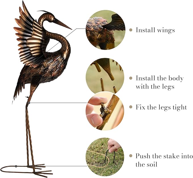 - 【Original Design】These metal crane statues feature a beautiful brass color that glimmer in the sunlight, adding a lovely touch to any decor