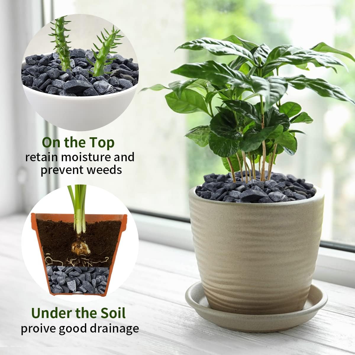 - 【Size & Weight】Black gravel size is about 3/8 inch. Total weight of a bag: 5 pounds. Our black gravels are unpolished and it'll be some powder on surface. It is a normal phenomenon