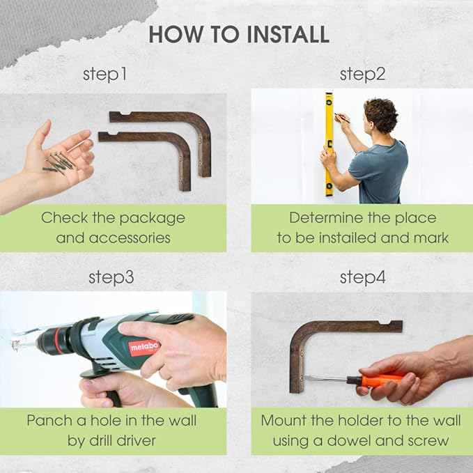 - EASY INSTALLATION: With the included hardware and easy straightforward instructions, mounting our plant hanging bracket for wall is a breeze. Our hooks for plants comes come with 4 screws, 4 dowels and 4 self-adhesive screw covers for installation.