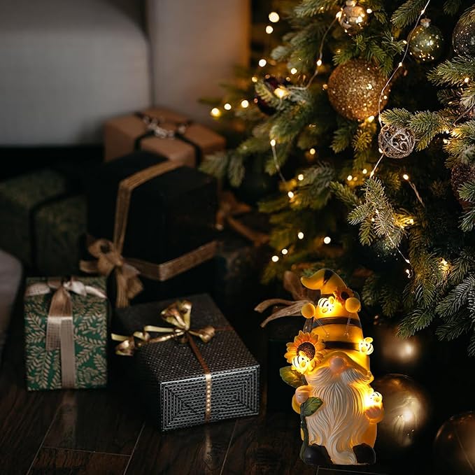- 【Attractive Design for Gnome Statue】Hopeful colorful bee garden gnomes, hand-held solar lights with outdoor waterproof decorations for sunflowers and lifelike bees. When night fell, the bee glowed and appeared quiet and cheerful.This lovely garden sculpture is ideal for outdoor patio decorations.Create a cozy atmosphere in your outdoor garden decor.The light will cast a soft and warm glow on the lovely statue