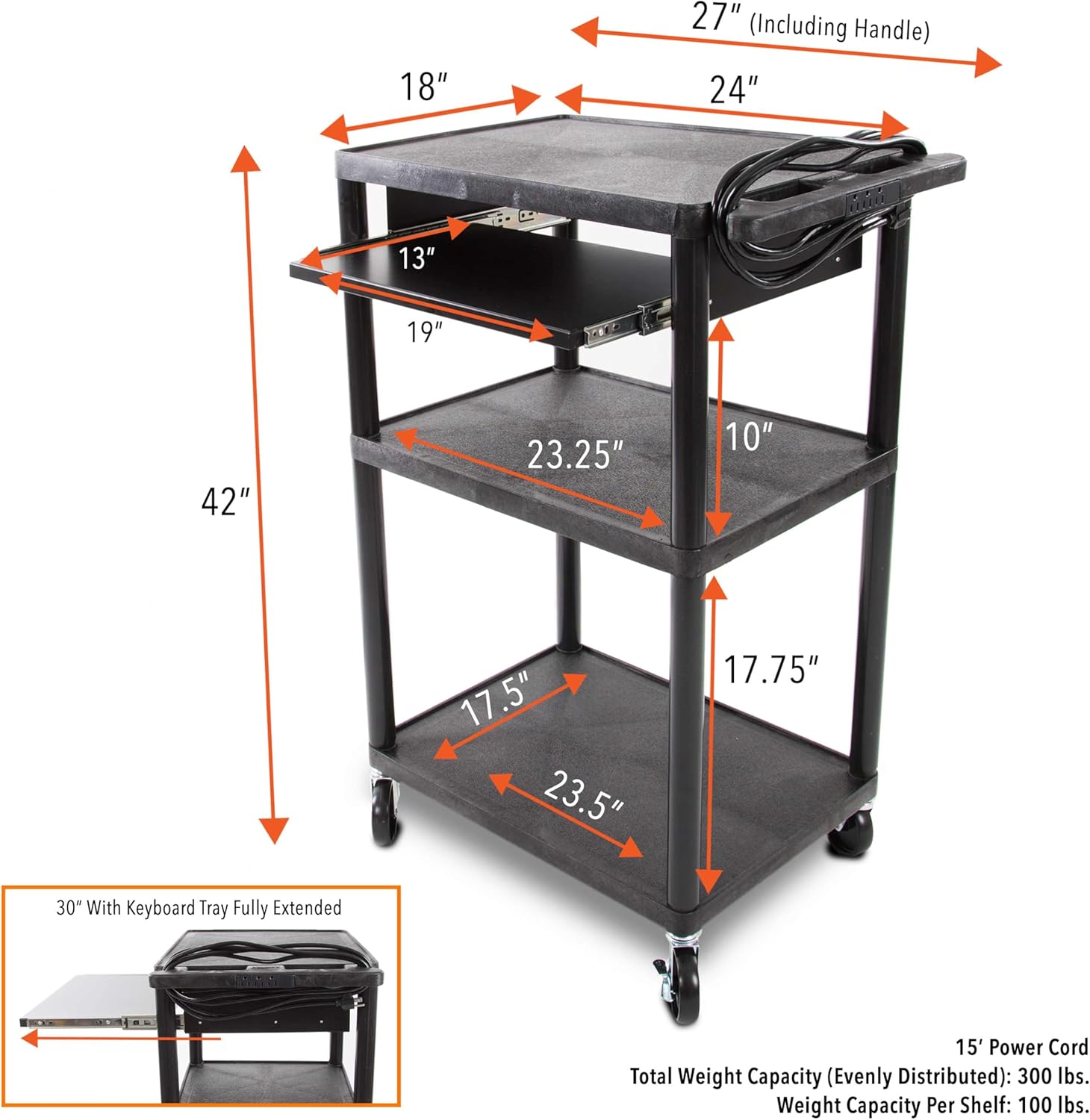 - EASY ROLLING WHEELS: Take your cart wherever it is needed! Your new media cart is great as a mobile workstation with 4 full swivel casters and two locking brakes.
