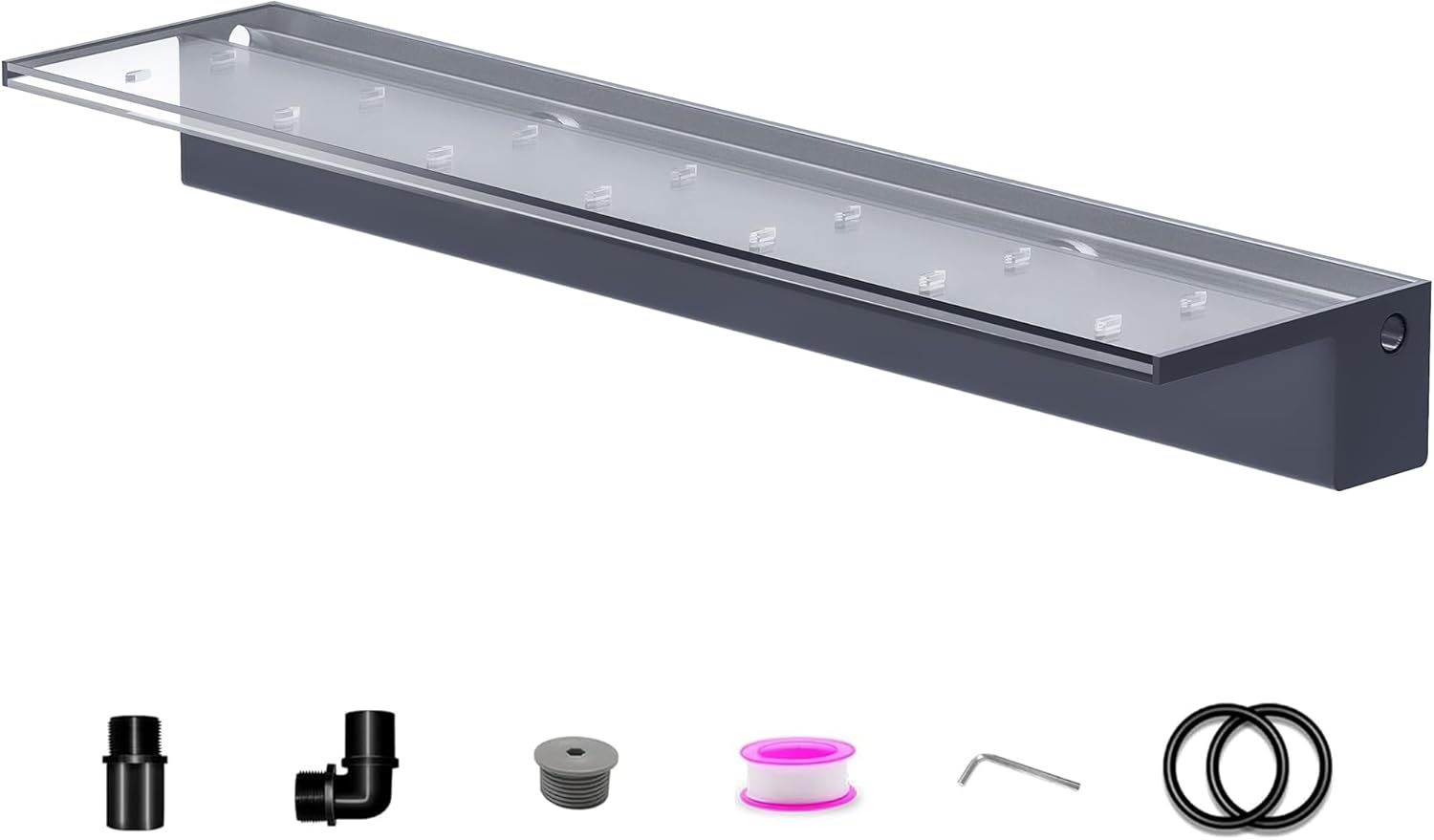 - 【Spillway Waterfall】- The main body of this spillway waterfall is clear acrylic for stable long-term use, featuring an top open lip design that creates elegant, invigorating, freefalling water effects to add a decorative touch to ponds and pools, letting you enjoy the relaxing sounds of water for a sense of calm and well-being. LED light strips not included, but available separately.