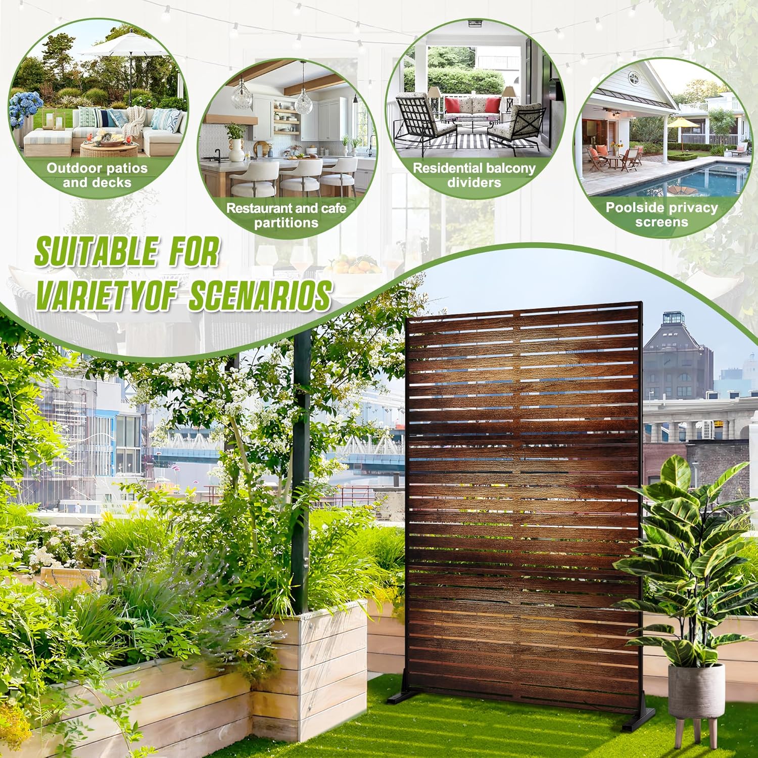 - 【Unmatched Endurance】Fency metal privacy screens exhibit exceptional durability, standing strong against scratches, water, sunlight. Enjoy the peace of mind that comes with no concerns about image fading or damage, offering enduring, premium decorative solutions.