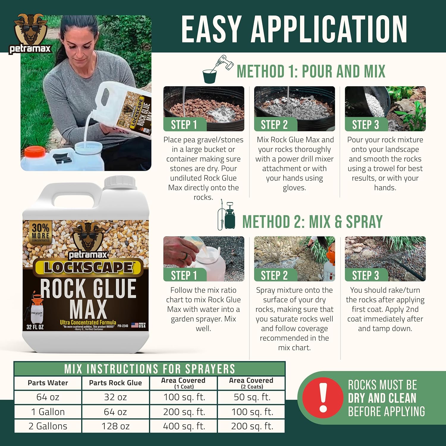 Petra Max Rock Glue for Landscaping, 32 Ounce - Ground Coverage & Pet Safe Mulch Glue for Rocks - Lockdown Gravel/Pebbles/Stones - Sticky Clear Gravel Binder & Decomposed Granite Stabilizer (50 Sq Ft)