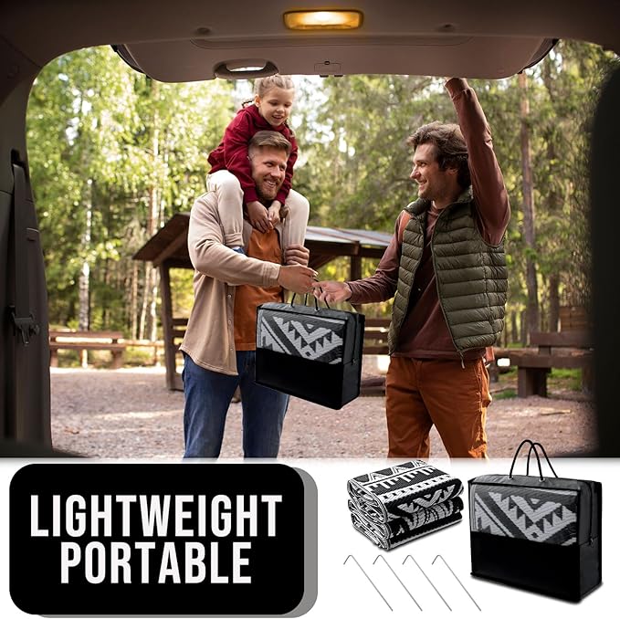 - LIGHTWEIGHT & PORTABLE: The lightweight foldable construction makes this patio rug ultra-portable; take them anywhere from campouts to picnics without adding extra bulk; with a matching carry bag for easy transport and storage