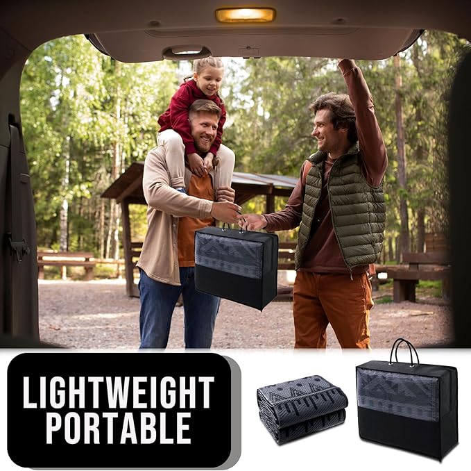 - LIGHTWEIGHT & PORTABLE: The lightweight foldable construction makes this patio rug ultra-portable; take them anywhere from campouts to picnics without adding extra bulk; with a matching carry bag for easy transport and storage