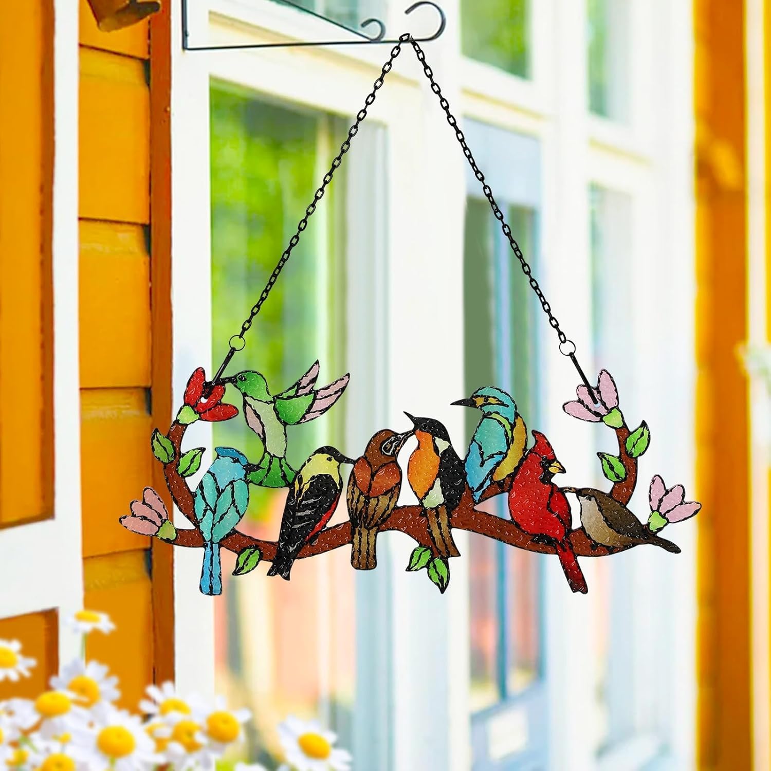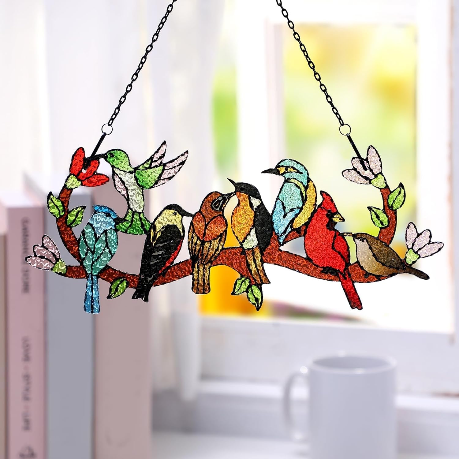 - Bird-Themed Design: Our birds-on-branch stained glass suncatcher vividly showcases 8 colorful birds perching on a sturdy budding branch, including cardinals, hummingbirds and kingfishers. Great addition to your home decoration, adding natural beauty and serenity to your house.