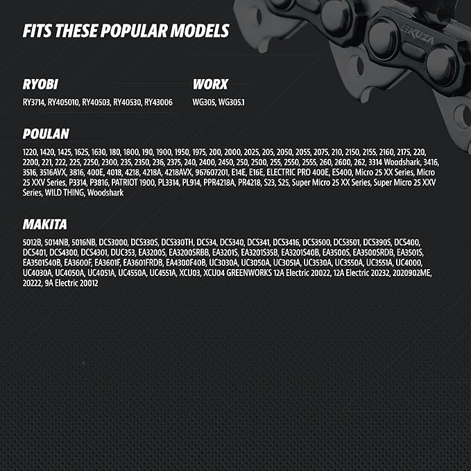 - Versatile Compatibility Fits a wide range of chainsaw models, including: Husqvarna, Ryobi, Worx, Echo, Craftsman, Homelite, Poulan, Makita and more. Check the full compatibility list below to find the perfect fit for your saw.