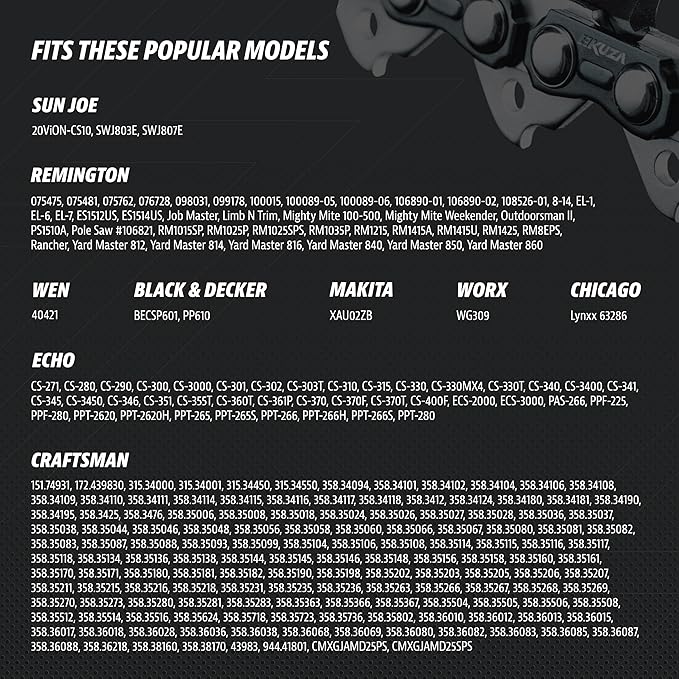 - Versatile Compatibility Fits a wide range of chainsaw models, including: Echo, Worx, Craftsman, Homelite, Remington, Makita, Sun Joe, Black & Decker and more. Check the full compatibility list below to find the perfect fit for your saw.