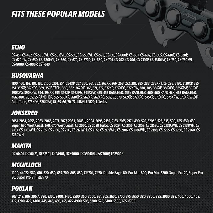 - ✔️Versatile Compatibility Fits a wide range of chainsaw models, including: Husqvarna, STIHL, Echo, Efco, Jonsered, Makita, Mcculoch, Poulan and more. Check the full compatibility list below to find the perfect fit for your saw.