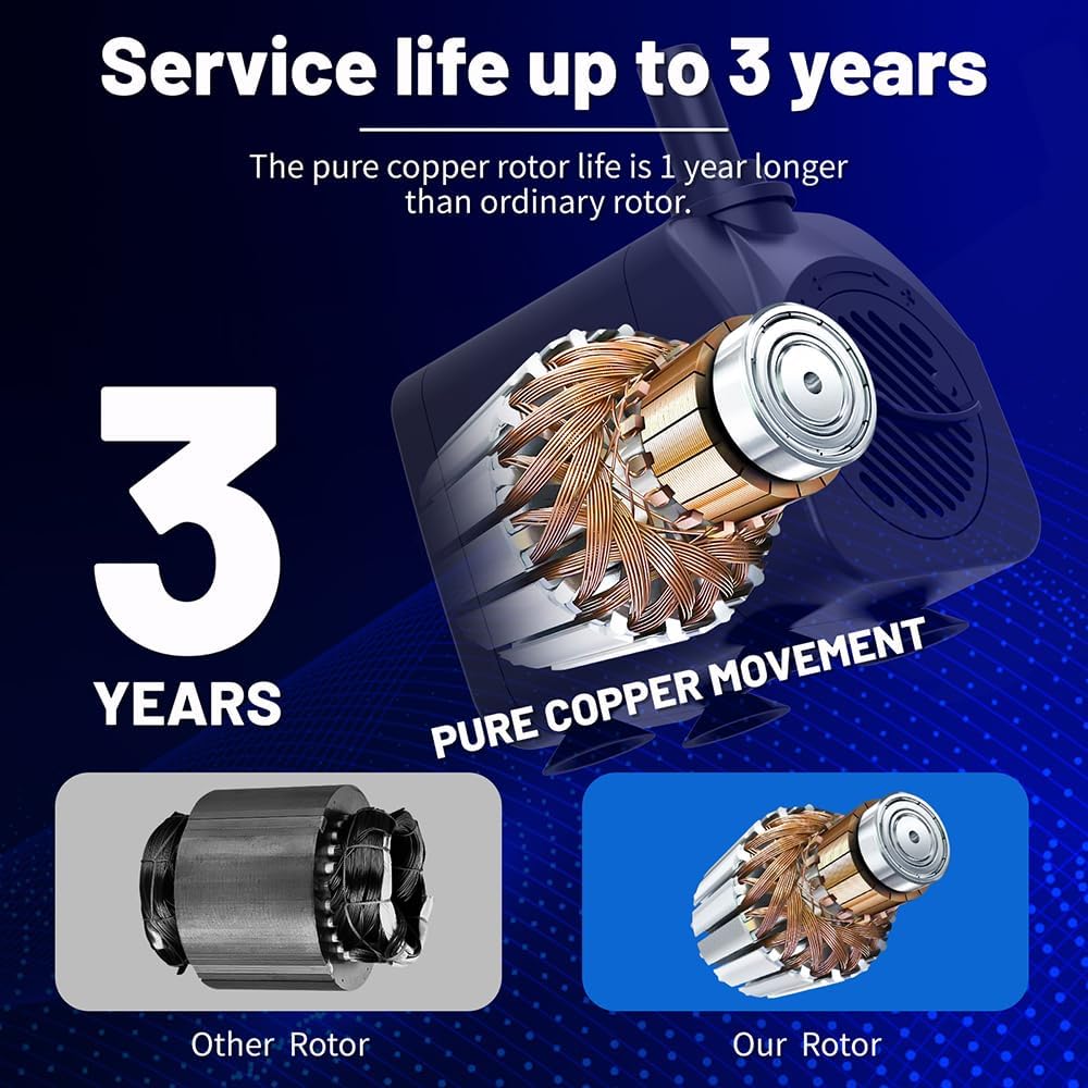 - 【ULTRA-QUIET DESIGN & LONG LIFE】In order to keep the pump quiet and have a longer life, increased the cost by using high quality rotor and copper,make the pump quiet & long life.