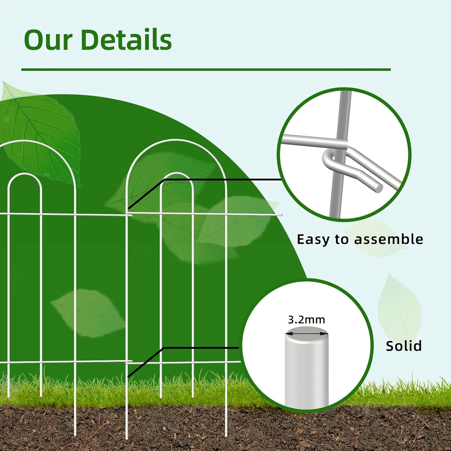 - EASY TO INSTALL & STORAGE: The decorative garden border fence is easy to install, sturdy. No additional tools to remove this temporary wire garden fencing for reinstallation in another place. Simply pull the fence legs of this flower garden border fencing out from the ground where you stick this vegetable garden fencing then reinstall.