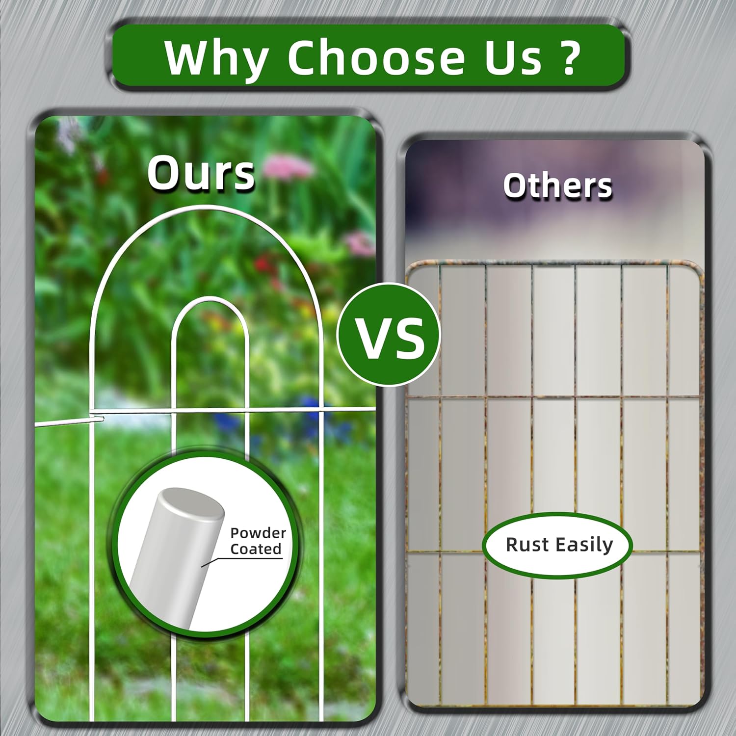 - THE SIZE & MATERIAL: The white garden fence with panels fence 32” high, overall length 20feet in one set (1set composed by 14 panels), The metal garden fence border panel made of iron wire inside then white powder coated surface outside for rustproof material.