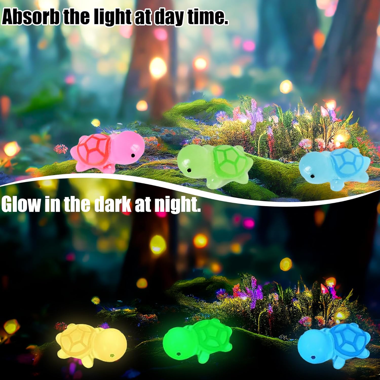 Luminous Mini Turtle Figurines - Glow in The Dark, 50 PCS, 6 Colors, Miniature Moss Landscape Decoration
