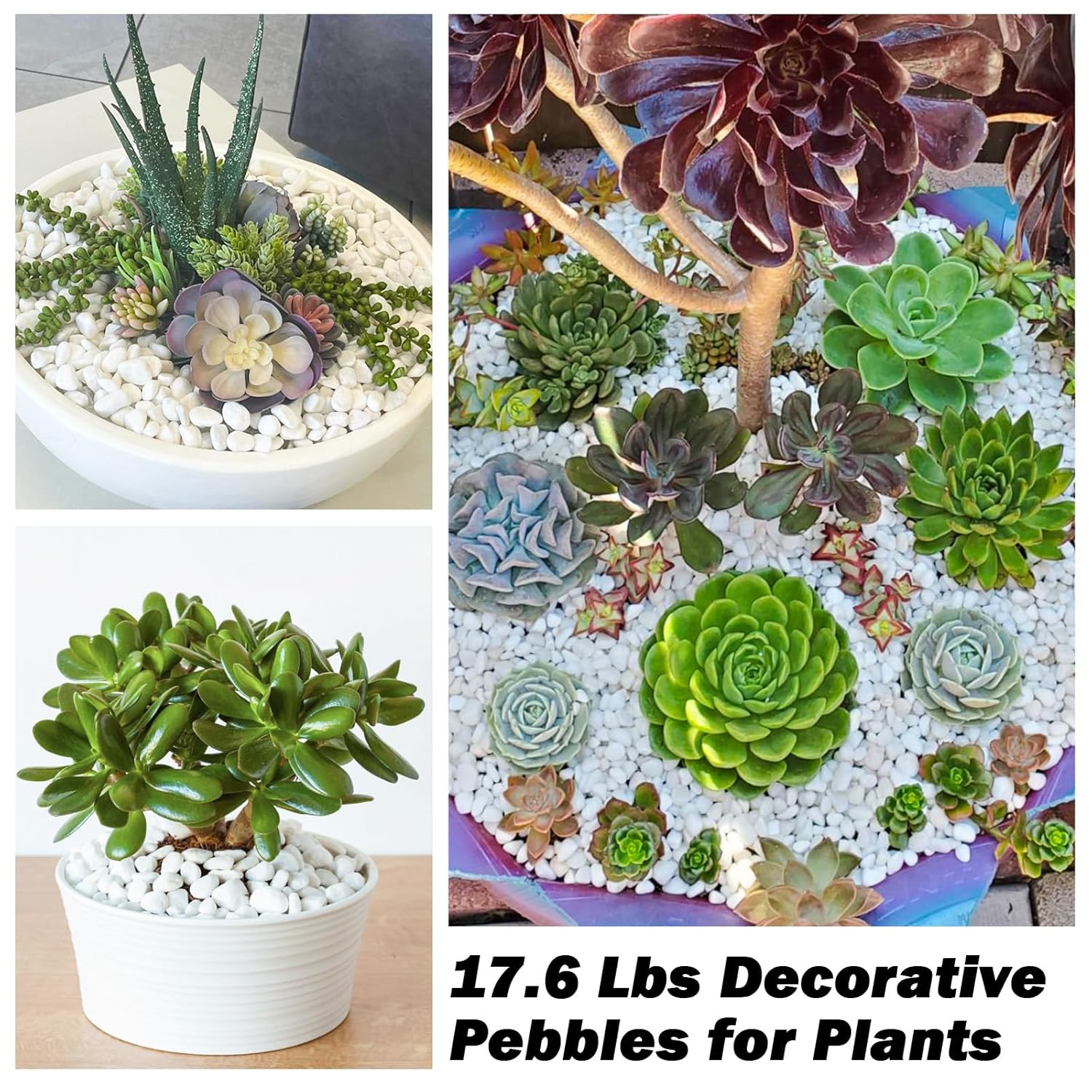 - Natural Pebbles for Plants: Unlike wood mulch, which will deteriorate, these 1 - 2 inches large stones are more cost-effective and will retain their original color after being used for a period of time. These snow-white river rocks are great decorative stones for your bamboo plants, succulent plants, and various indoor and outdoor house plants.