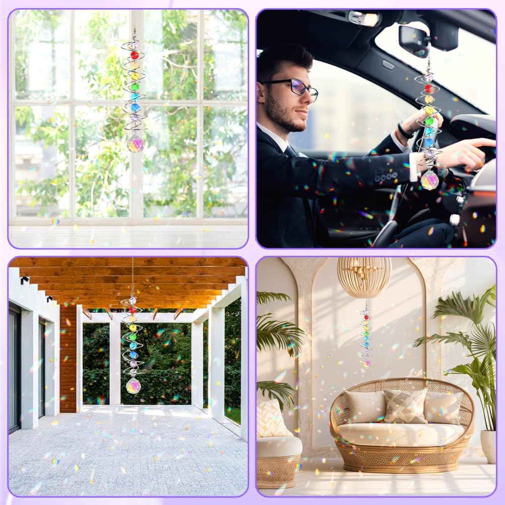 - Sun Catchers: You will get a crystal suncatcher gazing ball, combination of seven chakra octagonal crystals and a AB colored crystal ball, when the special double structure spiral tail is rotated, the crystal ball seem to move up and down, make a magical optical illusion!