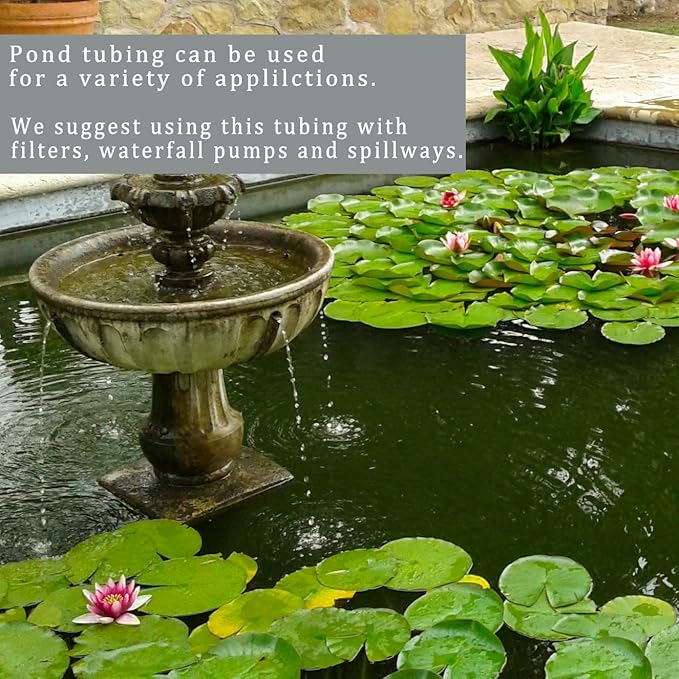 - Designed to be safe for fish, plants, and wildlife, pond tubing is Non-toxic. Its Black color blends in naturally with its surroundings.