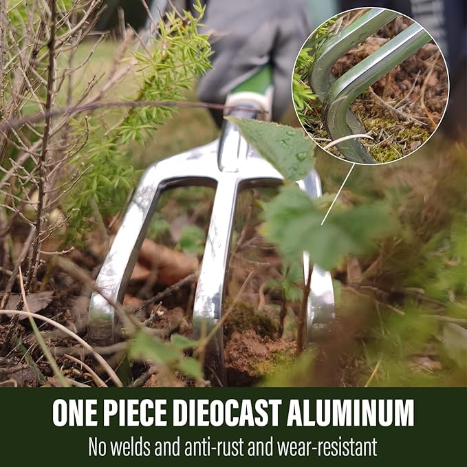 - ONE PIECE DIE-CAST ALUMINUM= LIGHTER,STRONGER: Our in-house foundry uses marine-grade aluminum alloy to create gardening tools that are anti-rust and wear-resistant of the absolute highest quality. These tools support you in fixing or overcoming any problems your garden faces,So go ahead, channel your inner green thumb and let our tools help you create the garden of your dreams!