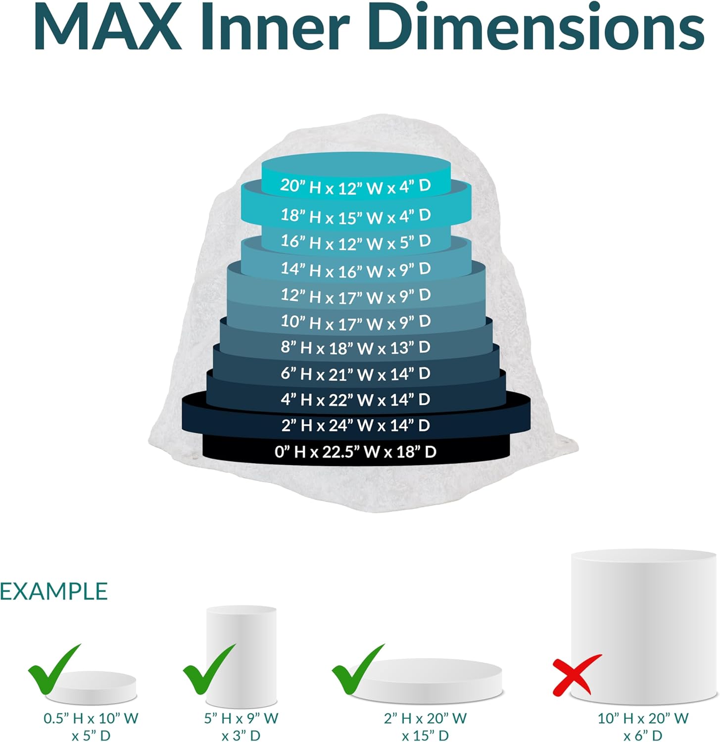 - COVERS WELLS, SEPTIC TANKS, AND MORE: Use this set of artificial landscape rocks to cover unsightly objects in the yard or hide a spare key discreetly. Each artificial boulder measures 24.5" W x 21" D x 21.5" H and weighs 5.2 lbs. The stakes included with the rock measure 1" W x 12" H each.