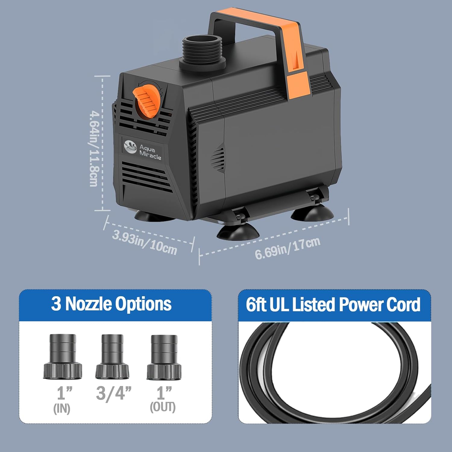 - CONVENIENT MAINTENANCE - Designed with a handle for portability, this fountain pump is user-friendly. Maintenance is hassle-free with no lubrication required and no special tools needed. Simply detach the front screen, rinse the components, and reassemble.