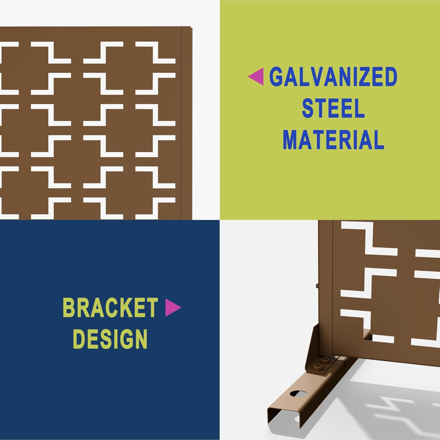 Metal Privacy Screen Outdoor 72" H×47" W,Freestanding Decorative Privacy Screen for Balcony Yard&Garden,Privacy Fence-Brown&Square
