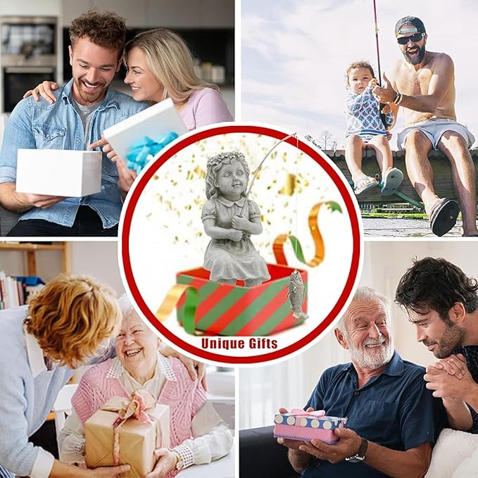 - Unique Design - Our Fishergirl has caught a wee little fish.Ready to pose on your pond edge. You will enjoy many laughs with friends, and family with his catch of the day on his fishing lure.