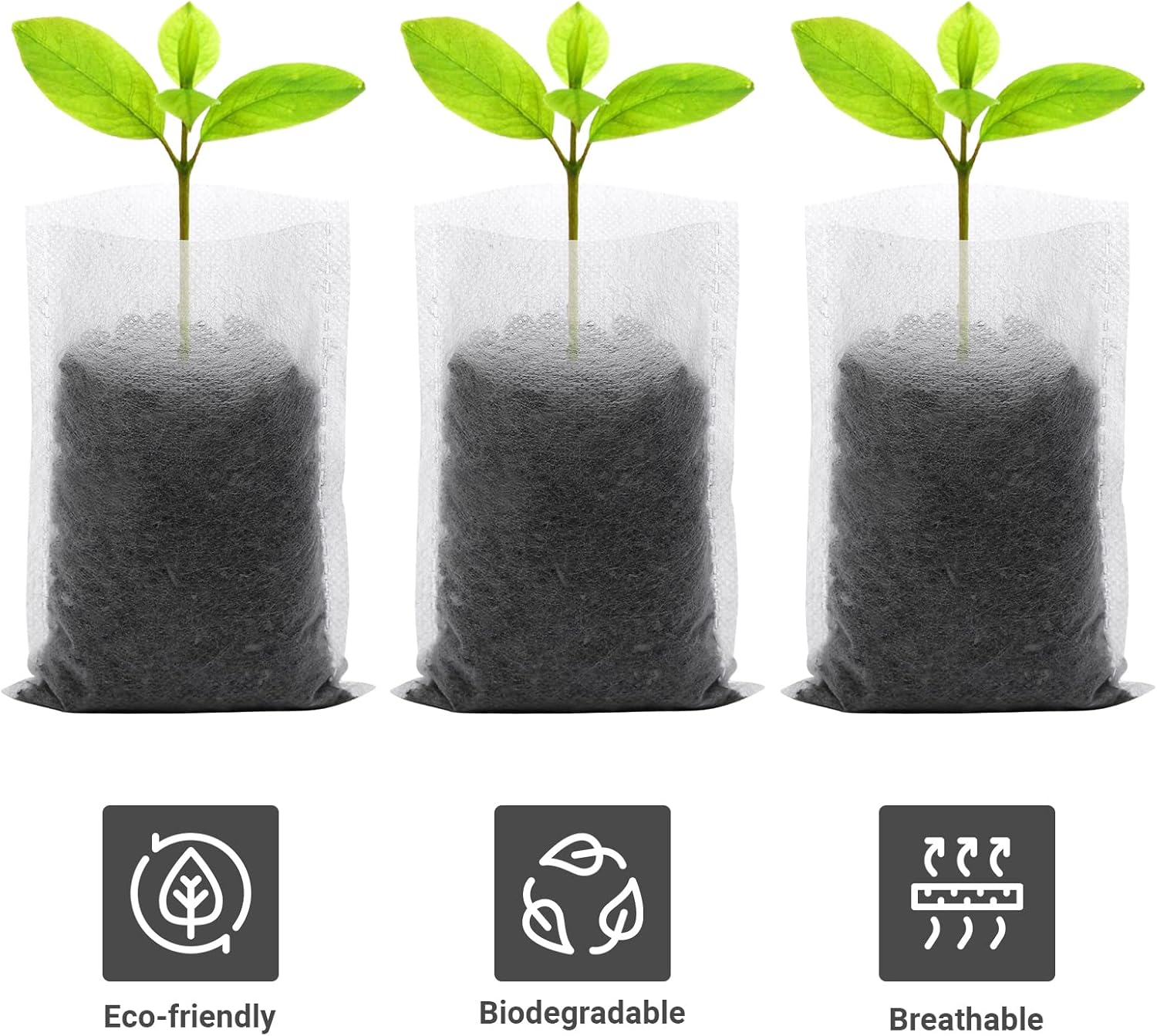 - 【HIGH SEEDING SURVIVAL RATE】The biodegradable plant bags has a small hole design, good drainage, air permeability, nutrient and moisture can be absorbed easily; biodegradable, don't need to remove the bag when transplanting, increase seedling survival rate.