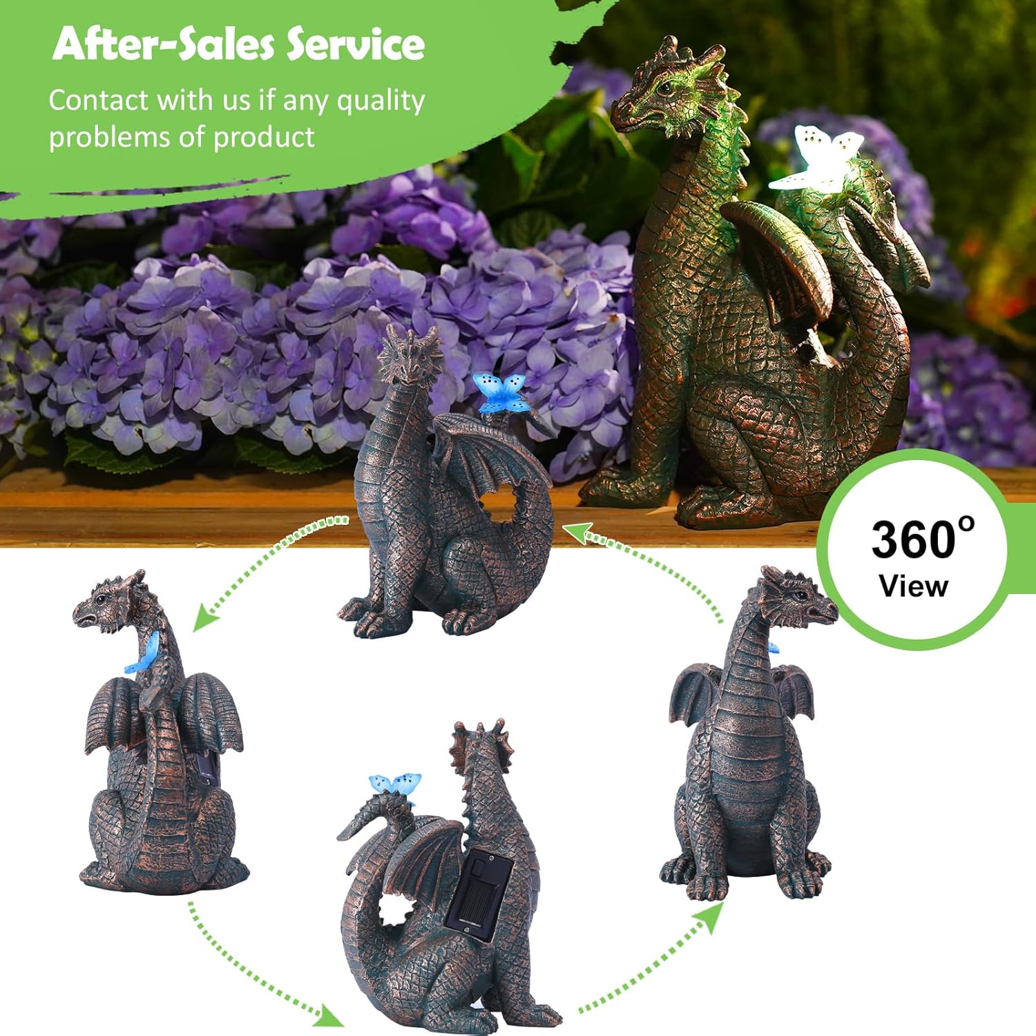 Nacome Dragon Outdoor Statues for Garden: Outside Decor with Butterfly Clearance for Yard Art Lawn Ornaments Porch Patio Balcony Home House - Birthday Gifts for Grandma Mom Women