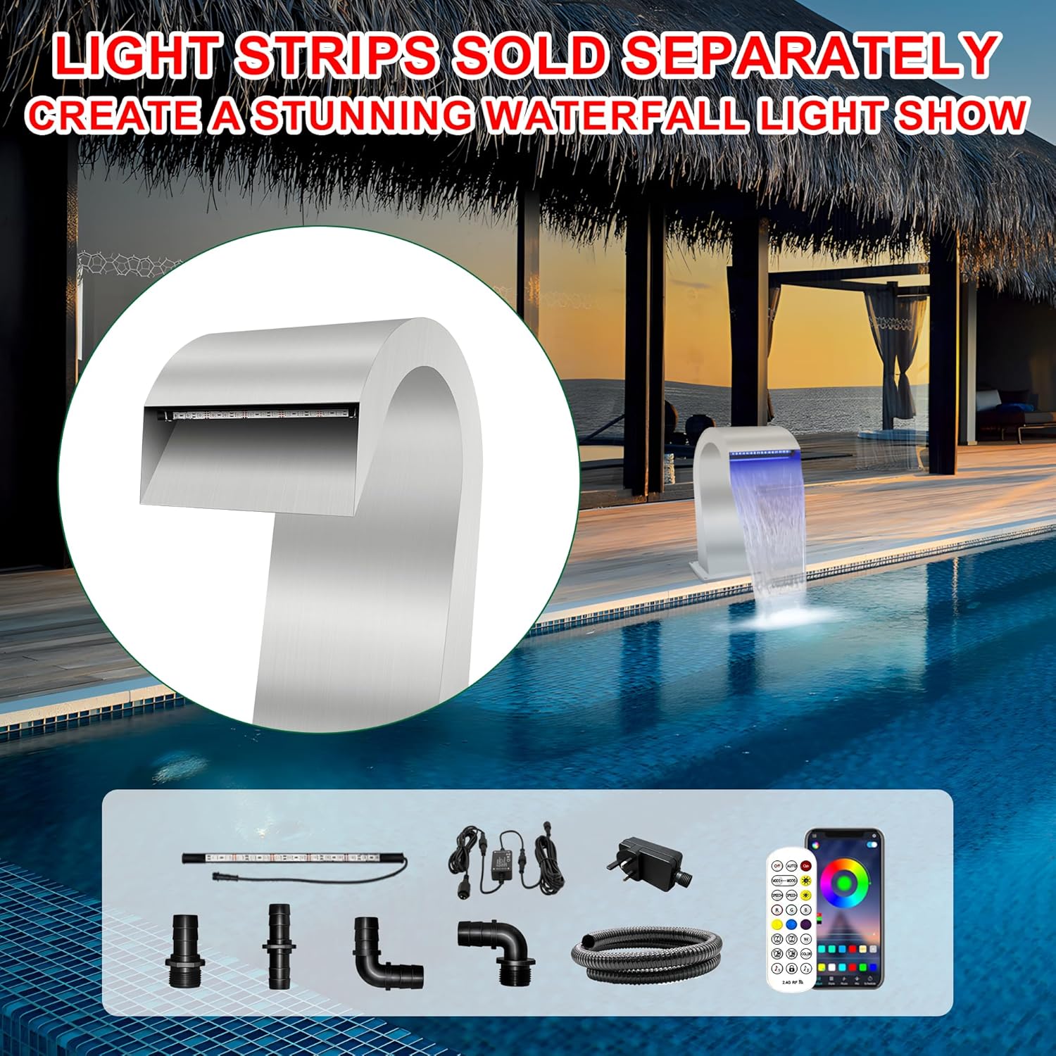 S-Shape Waterfall Spillway Ground Pool Fountain, LONGRUNNEW 304 Stainless Steel Outdoor Water Feature 18.82" x 11.93" x 12.20" for Garden Decor, Landscape Accents & Patio Pond Water Feature-Medium