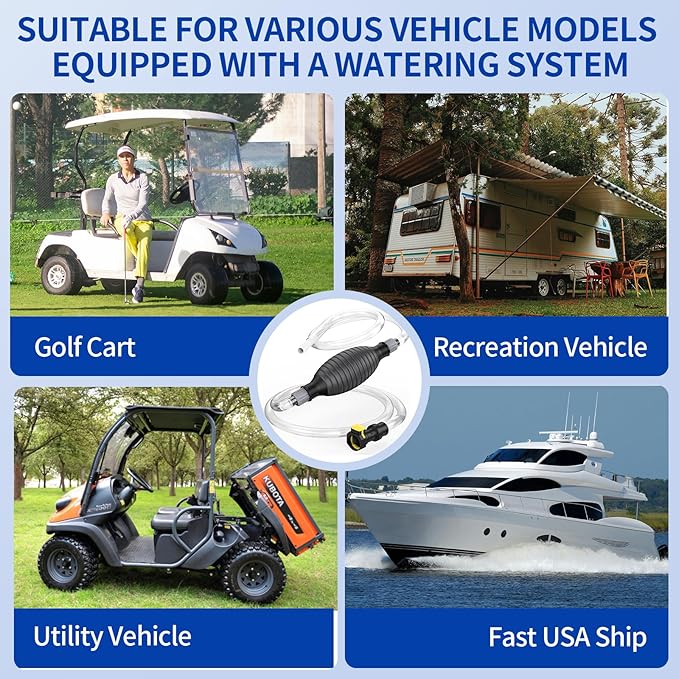 - Easy To Use: This golf cart battery watering system helps you manually add water to batteries easily, even in hard to reach places. The bulb will become firm and not allow to add more water when all batteries are filled, reduce over or underfilling risk