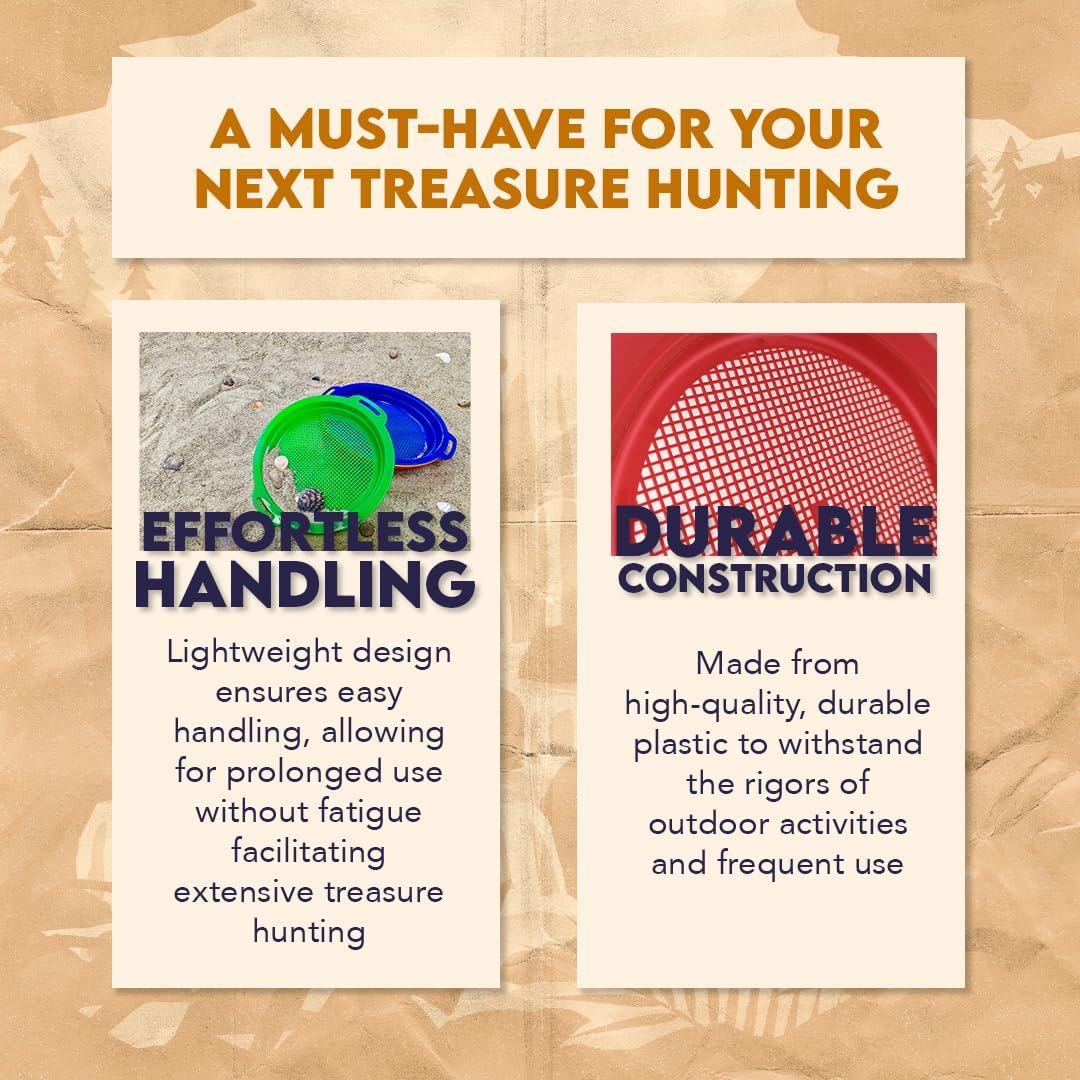 - Comprehensive Set: Includes six 8.5-inch diameter plastic sand sifting pans in vibrant red, blue, and green colors, perfect for a variety of sifting activities.