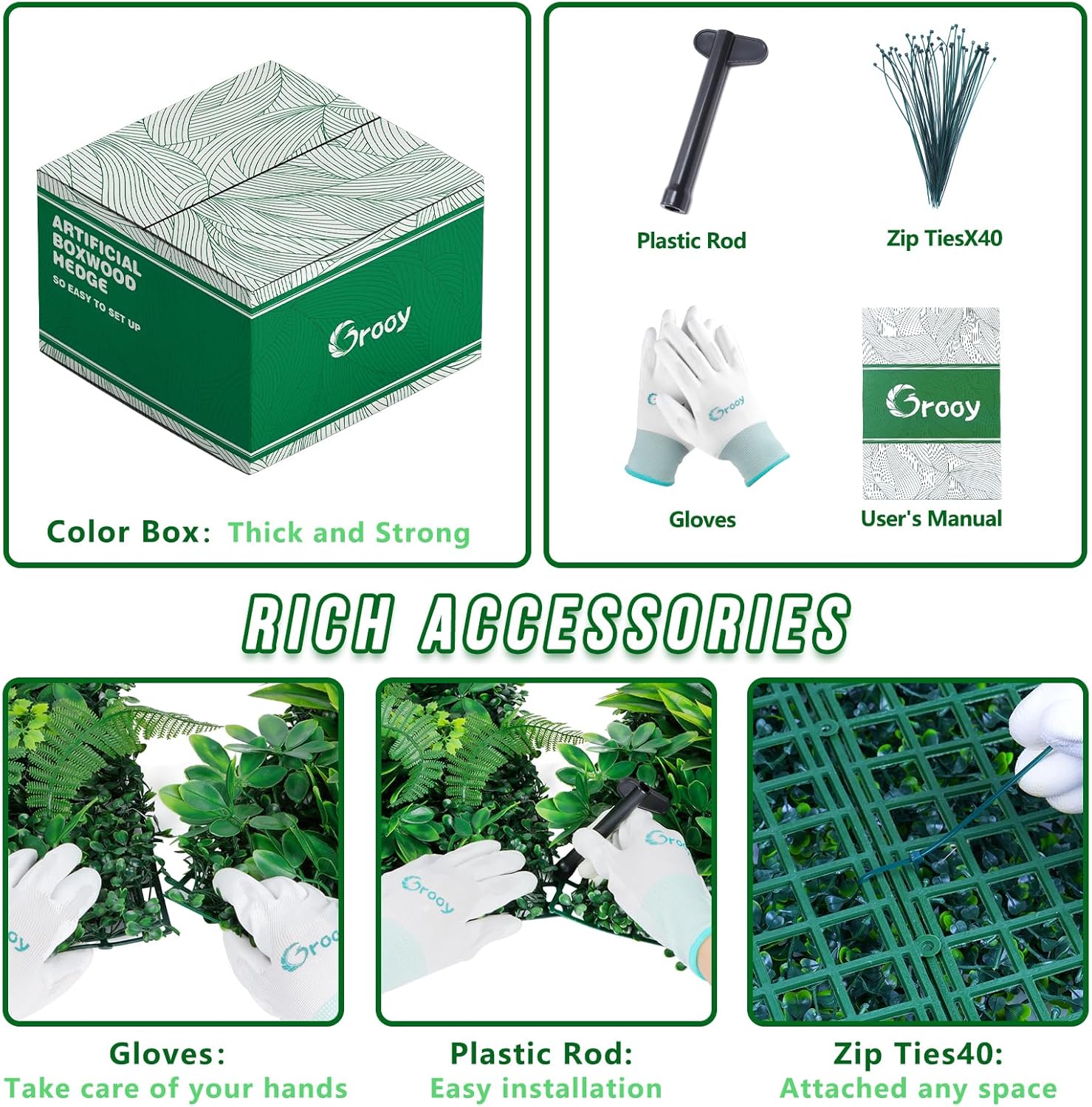- đżăPremium Greenery, Built to LastăGrooy Artificial Boxwood Hedge Panels are made tough, using the latest in High-Density Polyethylene (HDPE). No matter the blazing sun or stormy weather, they'll stay vibrant and lifelike, adding a touch of nature that lasts.