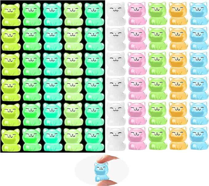 60Pcs Mini Cat Figurines Luminous Miniature Cute Resin Animals Glow in The Dark Tiny Cat to Hide Landscape Decoration Resin Figures DIY Accessories Ornament Craft Party Cake Topper