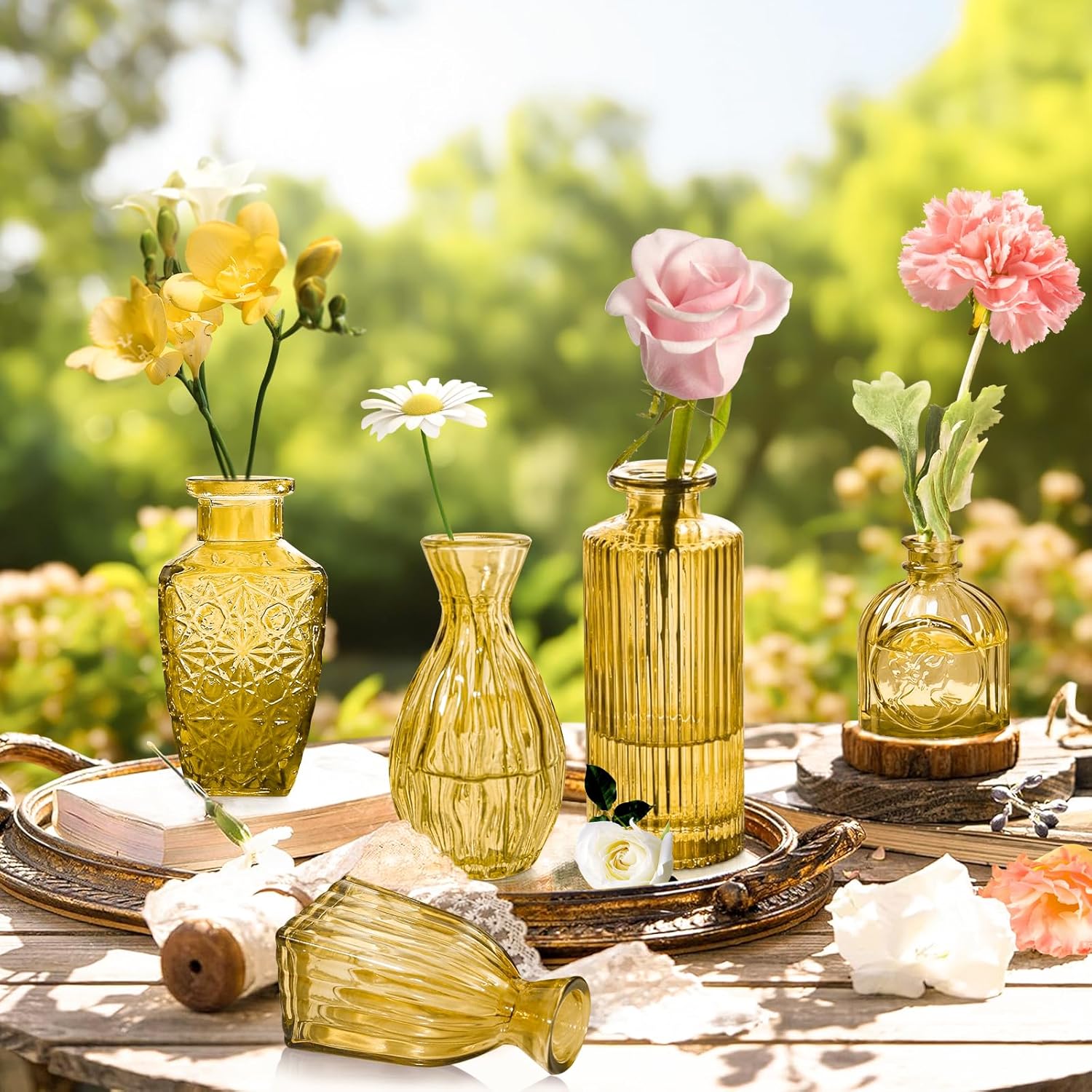 - Thick and Sturdy: Our glass vases bulk is made of thick and sturdy glass, strong and not easily broken. Each small glass vases floreros has a thickened base for stability, and the textured pattern on the surface of small vases for flowers adds a unique touch, injecting an element of sophistication to create a fun and captivating visual effect.