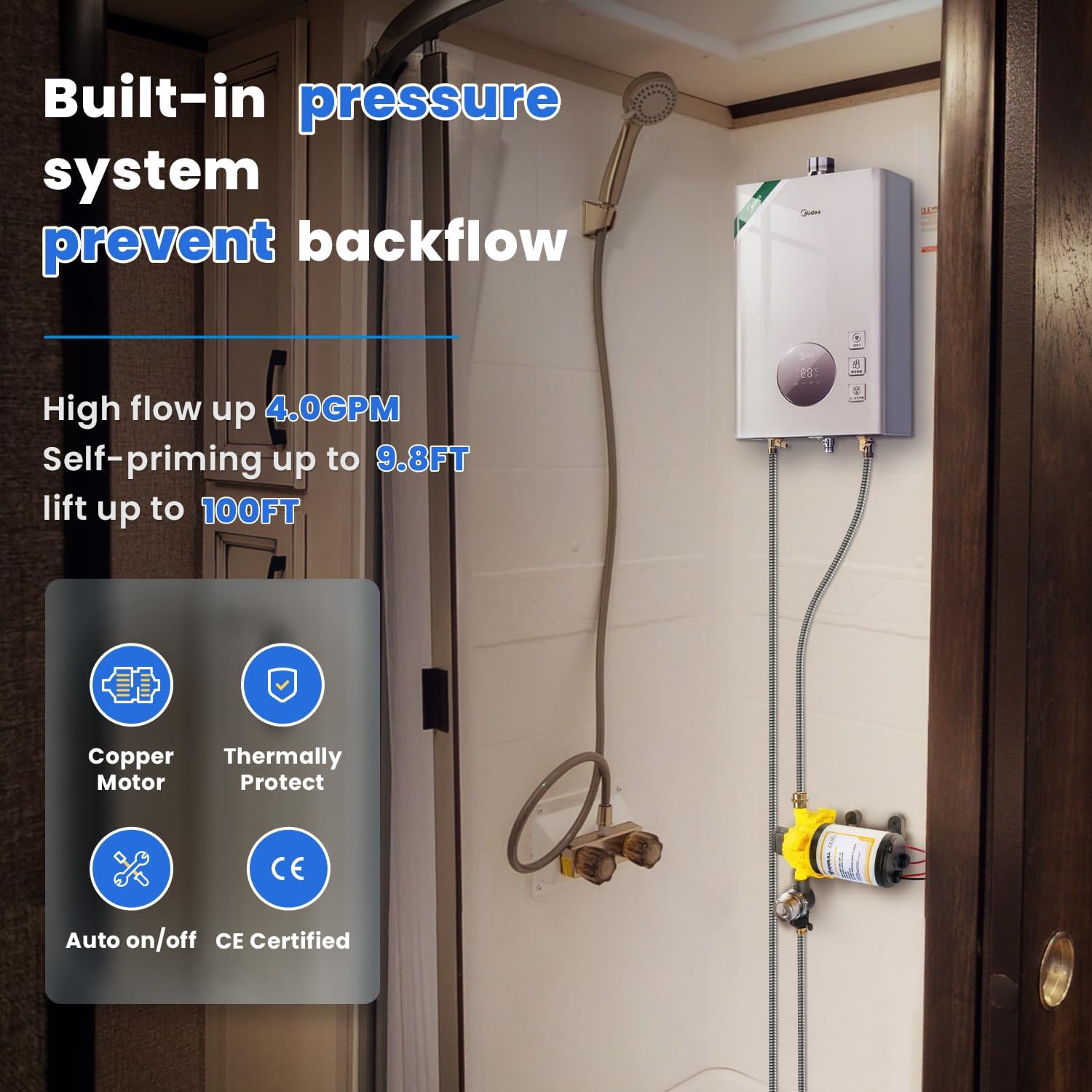 - 12V Quiet Pump: Water booster pump for home is equipped with shock-absorbing rubber mounting feet, which can significantly reduce working noise! Let you have a comfortable sleep!