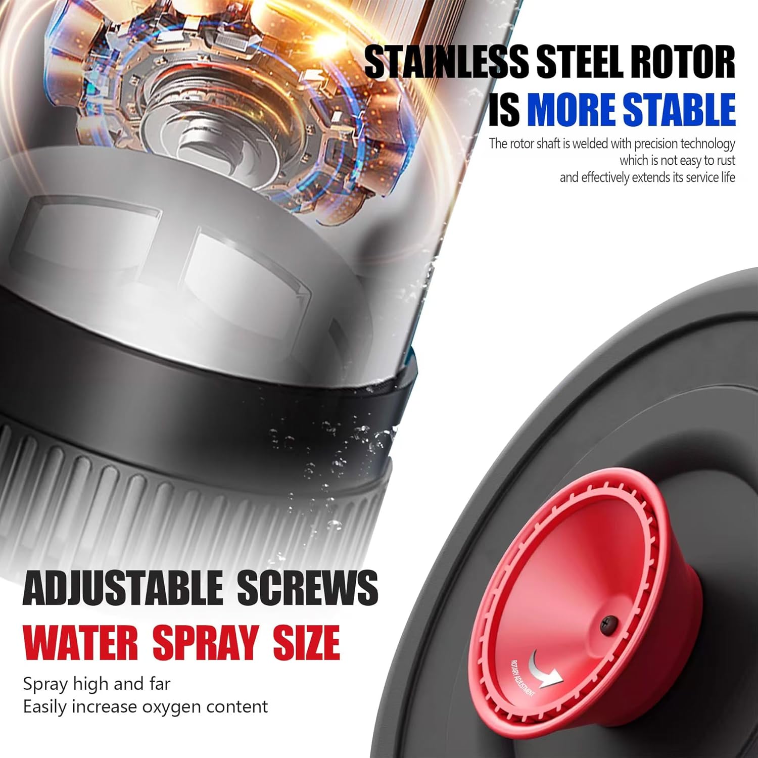 - Constructed with corrosion-resistant materials and a ceramic rotating shaft, this pond fountain aerator is engineered for durability. Its fully sealed waterproof design prevents electrical hazards, ensuring safe operation. Equipped with overheat protection and a clog-resistant intake screen, it prevents debris blockage, maintains smooth water flow, and guarantees long-term stable performance for worry-free use