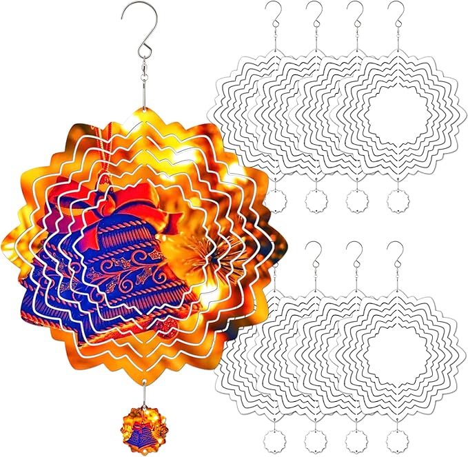 - BRIGHT AND VIVID COLOR: The double-sided of our wind spinner sublimation blanks ornaments is treated with high-quality sublimation coating, ensuring the vivid and crisp sublimation results for every project. Could be a nice Halloween decorations. Allowing you to incorporate your favorite designs or photos, unleashing your imagination to create a stunning personalized product. This windspinner sublimation blanks is suitable for heat transfer.