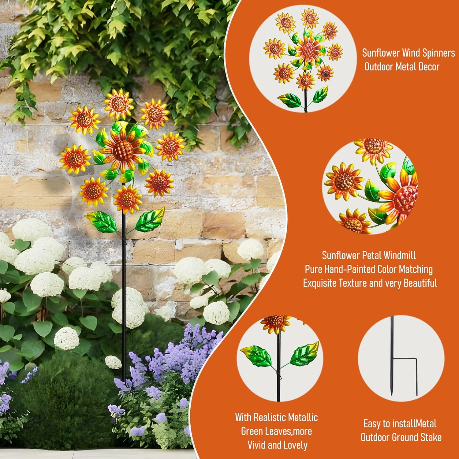 - WIDELY USED: The wind spinner adopts the design concept of sunflower shape, and it rotates very beautifully. It is a good choice for the courtyard garden and an exquisite gift for friends and relatives.