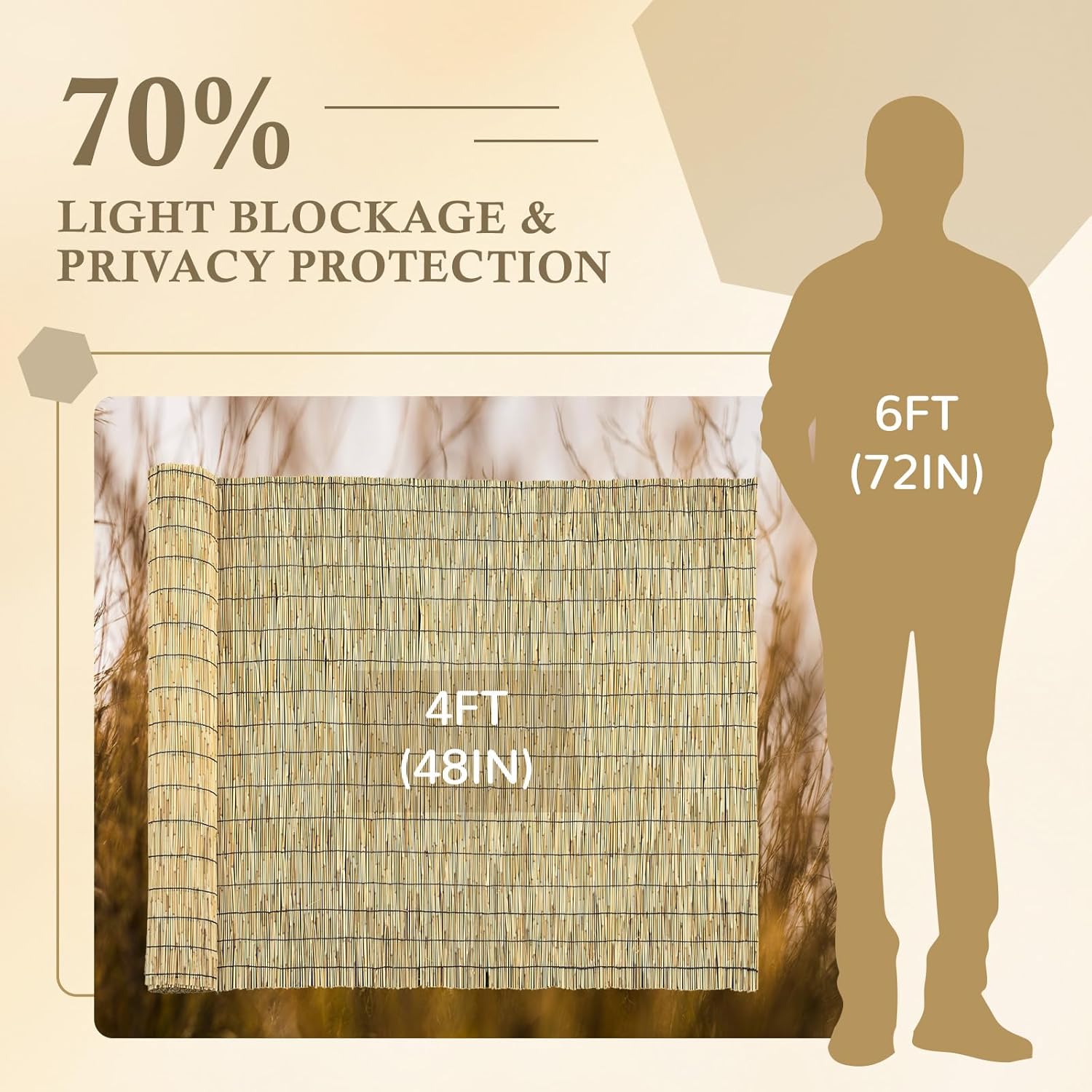 - Material and Craftsmanship: Each reed screen is meticulously hand-selected, and the garden reed fencing is woven together with cotton strings. The bamboo reed fencing can block 70% of the sun's heat, providing more shade and keeping the area cool throughout the summer