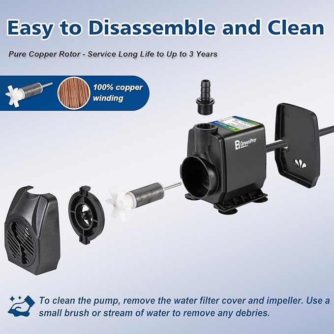 - Wide Range of Applications: This is a high-performance, energy-efficient pump and is well-designed for use in fish tanks, fountains, hydroponic systems, irrigation systems, etc