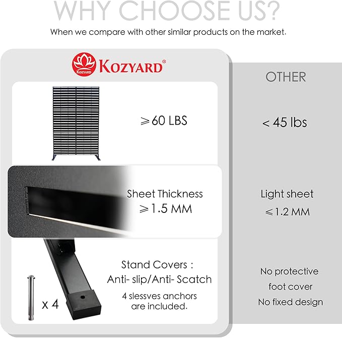 - ✅ High-Quality Material: Our outdoor privacy screen is crafted from thickened pipe material using an all-steel construction and advanced casting process. The powder-coated finish enhances its sun and water resistance, ensuring long-lasting durability. Designed to withstand fading, rusting, and wear, this privacy screen remains resilient even in hot weather or heavy rainy seasons.