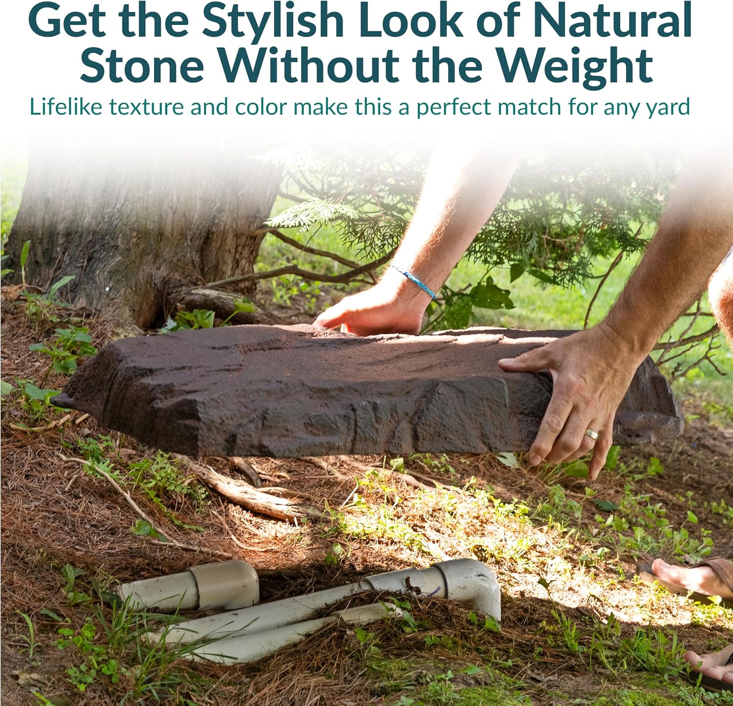 - CREATE AN AESTHETIC YARD: Use these plastic fake rock covers to hide and protect low-profile utility equipment in the yard. The landscape rocks can conceal manhole covers, gas lines, control panels, spillway boxes, and other unsightly objects to maintain a beautiful, natural looking outdoor space.