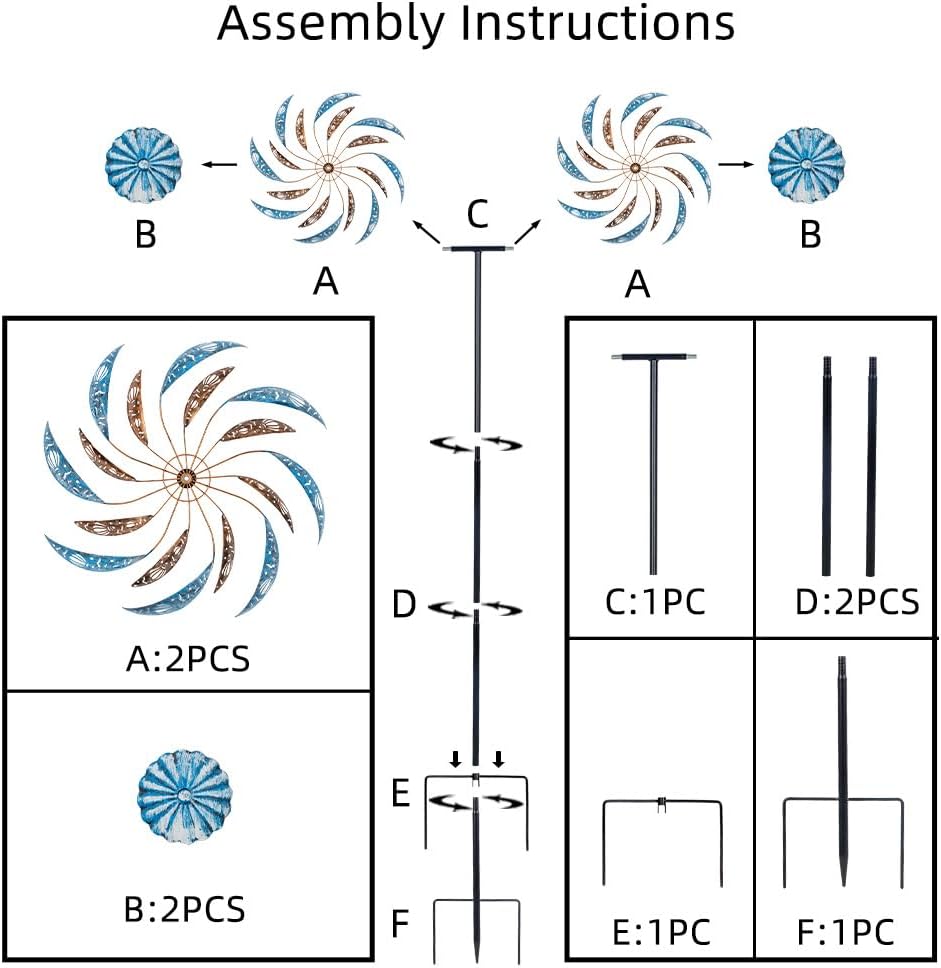 - Super Construction:This double wind sculptures & spinners has a solid metallic construction, blades can smoothly spin on sealed bearings, adding vitality and color to your garden