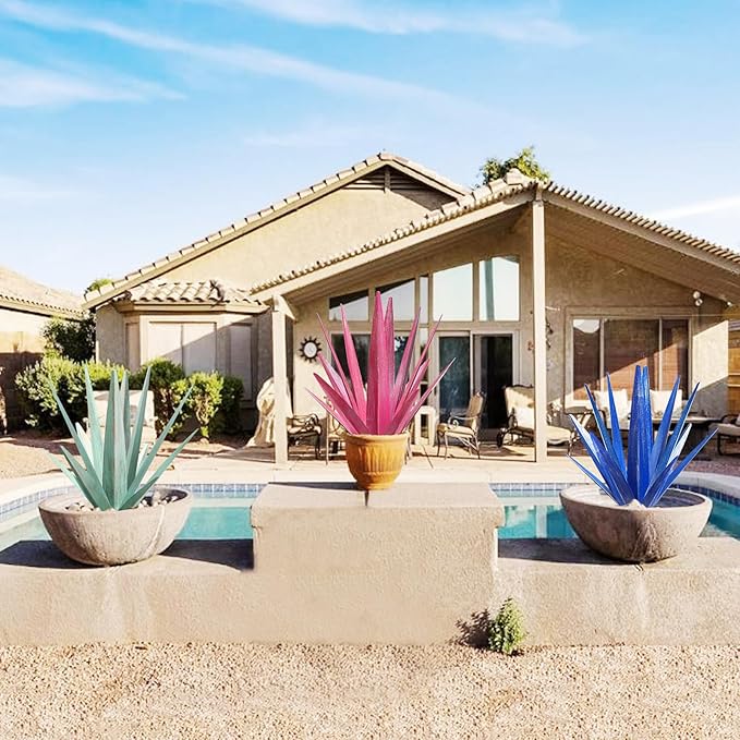 - [Hand Painted Agave Plant] - The tequila plant metal are hand made, the metal agave look just like growing out of the ground, and will brighten up any space you place them in. You can DIY and reshape the assembly little bit as you want.