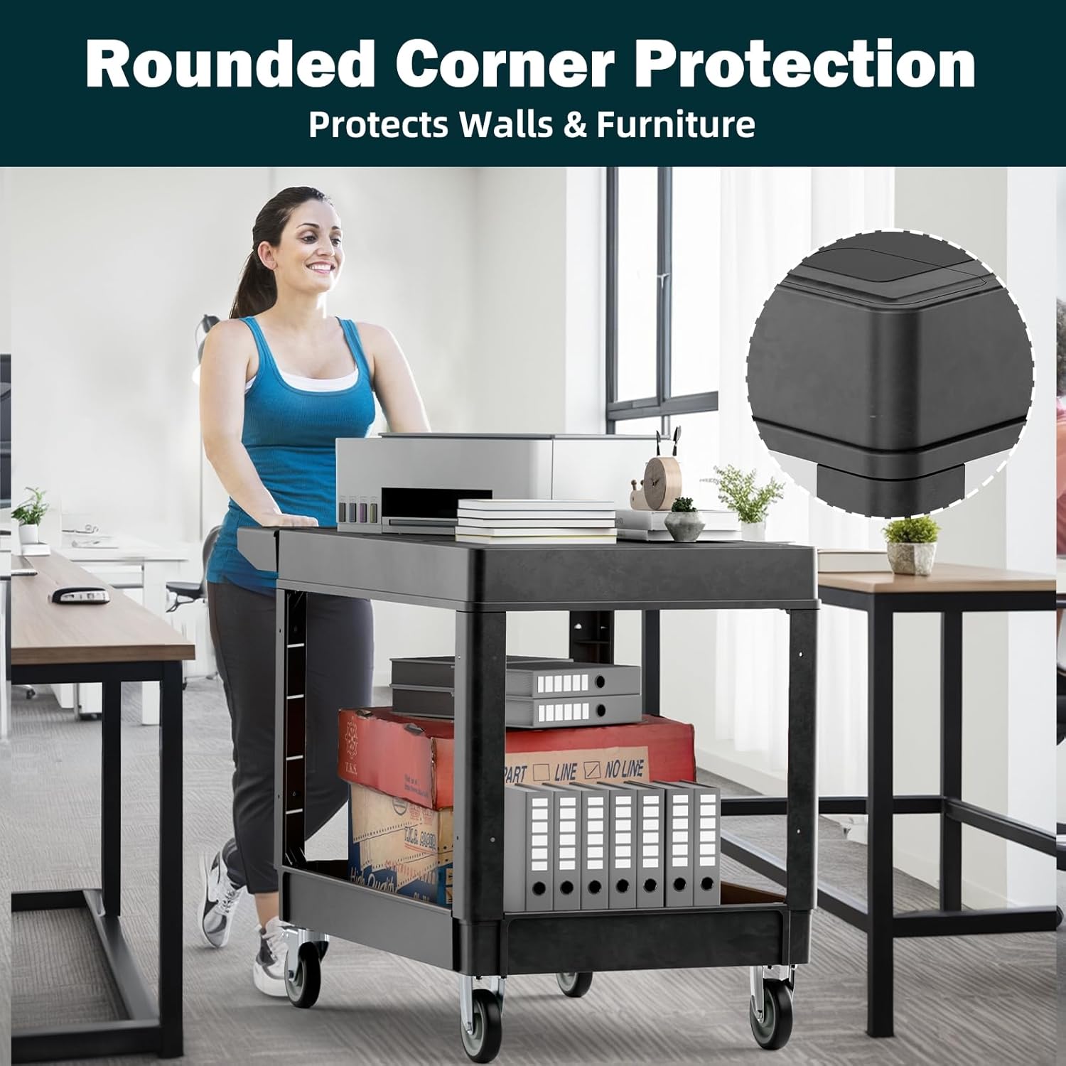 - 【Rounded Corners】Designed with rounded corners, our utility cart on wheels protects walls and furniture from bumps and damage, making it ideal for indoor use in places like offices and schools.