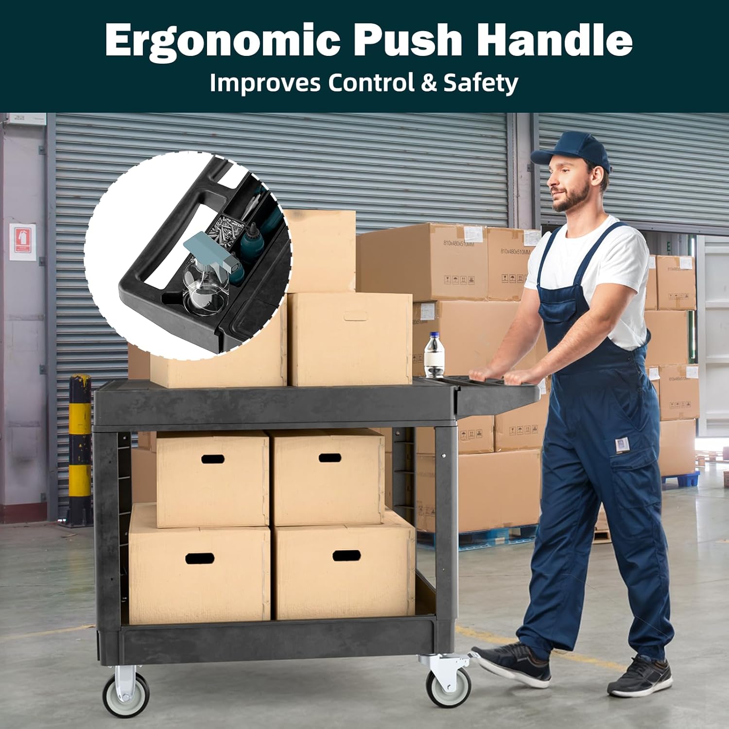 Flat Top Utility Cart Heavy Duty Flat 2 Shelf Multipurpose Cart 550LBS Capacity Service Cart with Ergonomic Handle Rolling Utility Carts with Wheels for Warehouse Garage Office Storage Transport