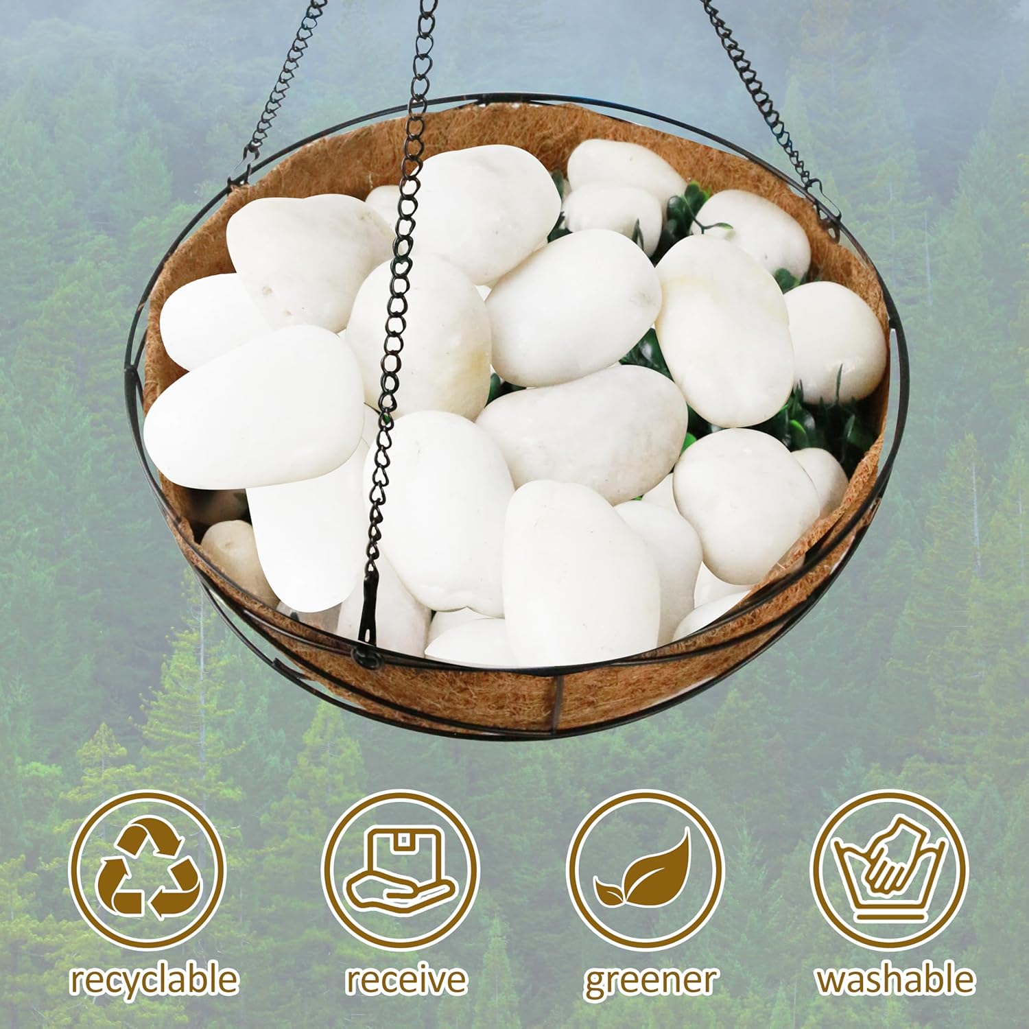 - 【18 LBS WHITE PEBBLES】- The diameter of each white river rock is approximately 2-3 inches. Composed of natural river rocks, the material will undergoes screening and extensive polishing to achieve rounded edges and corners. Following cleaning and waxing processes, it will be picked by the professional person to to remove the damaged defects, thereby ensuring the delivery of optimal products to consumers.